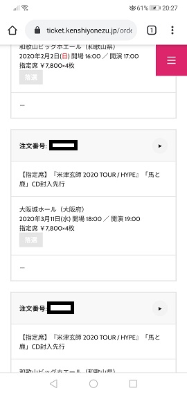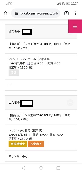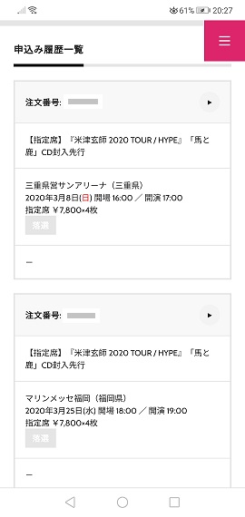 米津さんのライブチケ当落結果