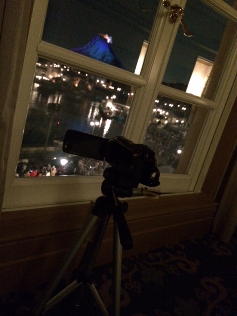 お部屋で火山眺めながら(そしてパークの音楽を聴きながら)