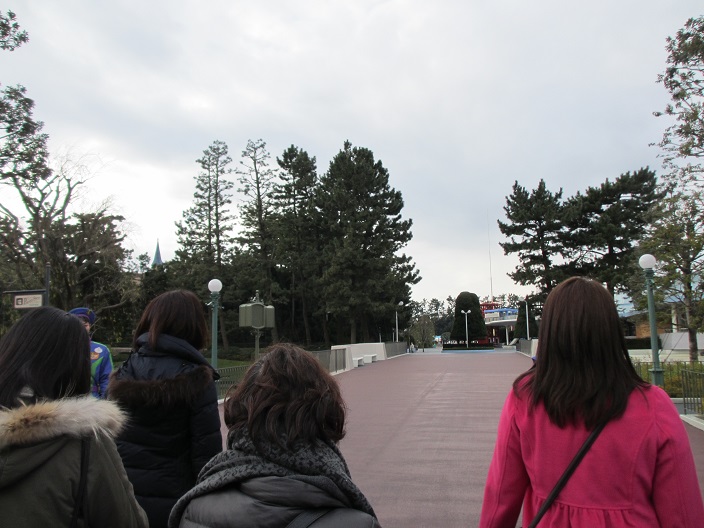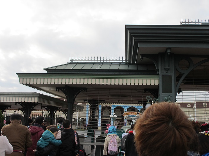 プラザのトゥーンタウンに一番近い橋の前で開園待ち。