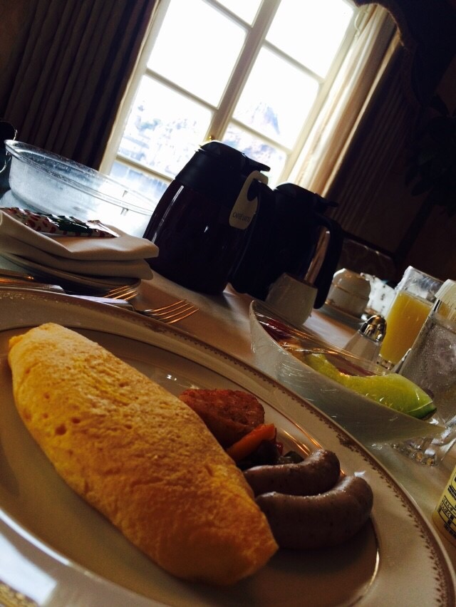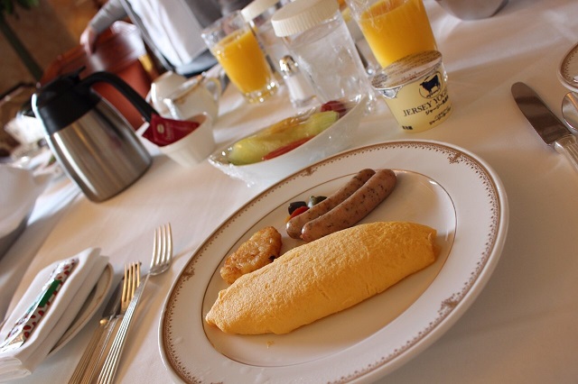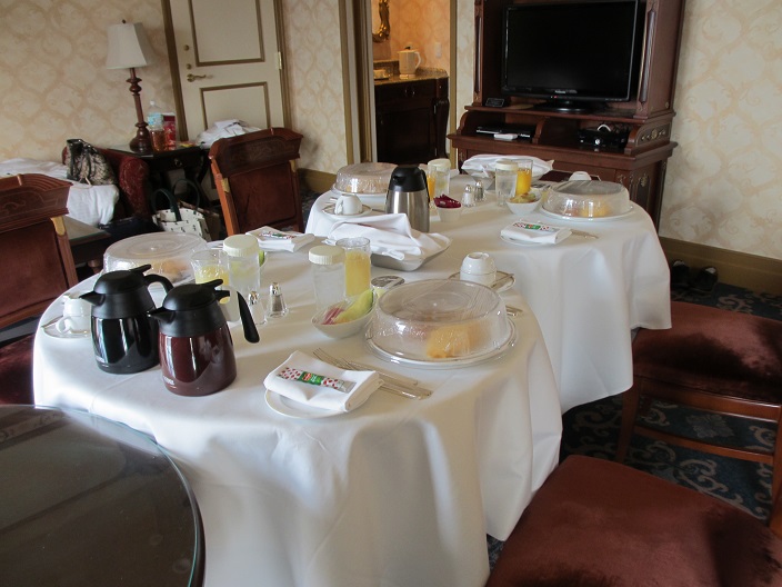 朝食は前日にルームサービスを一番遅い時間9:30~で注文済み。)